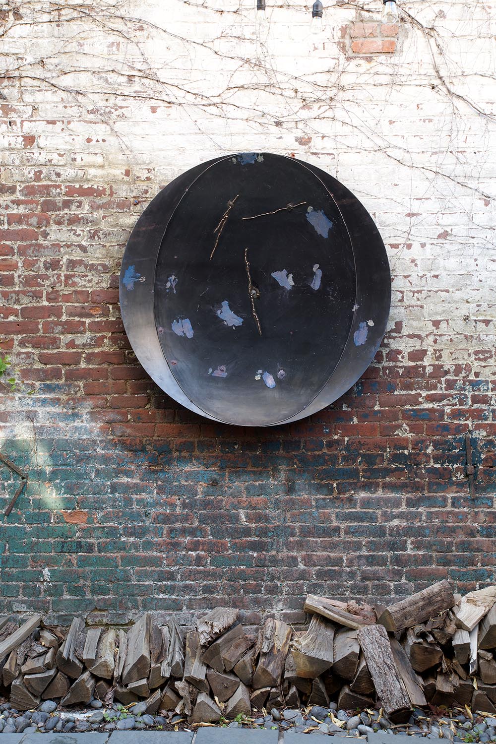 I always start on 14th Street and work my way north. Fort Gansevoort, housed in an 18th-century townhouse smack in the middle of the Meatpacking District, showed Los Angeles–based Anthony James’s sculptures. His new work has progressed from riffs on modernism, like his Mondrian Box of 2004 that rendered the Dutch painter’s signature grids in neon lights, to large steel-and-bronze disks etched with lines or symbols. The press release describes the works in spiritual terms, careful to avoid any mention of non-Western art—though its influences can be discerned. As much as cultural appropriation is a hot-button issue, James’s nonspecific references to mysticism and liminality are troubling in a market quick to colonize difference.