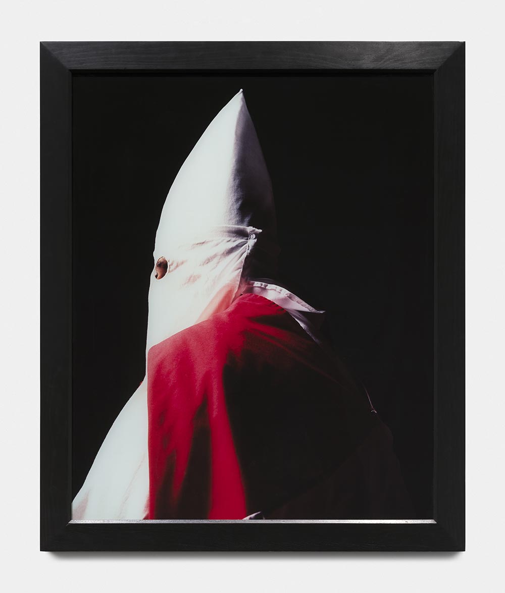 Andres Serrano, Klansman (Great Titan of the Invisible Empire), 1990, cibachrome, silicone, plexiglass, wood frame. Courtesy Paula Cooper Gallery, New York. Photo by Steven Probert.